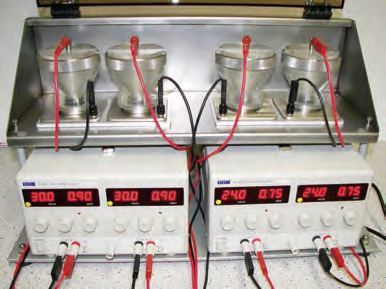 ● 连接多个电沉积室的双通道恒流电源;
